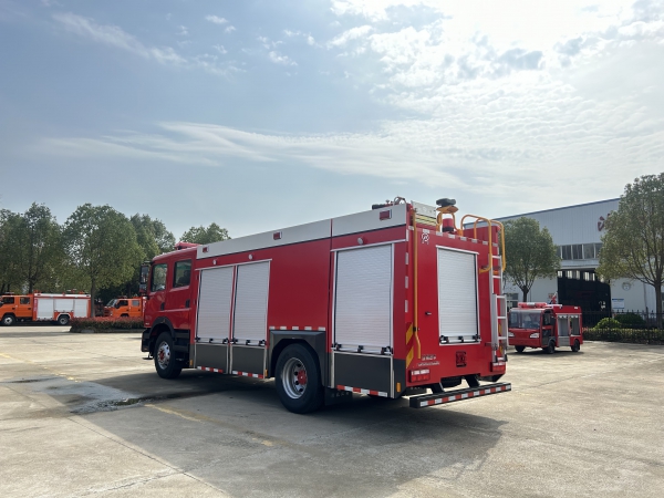 其它 | 水罐容積:8.200立方米,為一異型罐,水罐(1)外形尺寸:2320×1500×1300mm,水罐(2)外形尺寸:1270×2440×1300mm。整體式側(cè)防護(hù)結(jié)構(gòu),后防護(hù)裝置材料:Q235,截面尺寸:120×120mm,與車輛連接方式:螺栓連接,后防護(hù)離地高度:420mm。ABS生產(chǎn)企業(yè)為焦作博瑞克控制技術(shù)有限公司,型號(hào)為J ABS;襄陽(yáng)東風(fēng)隆誠(chéng)機(jī)械有限責(zé)任公司,ABS/ASR-24V-4S/4M。主要專用裝置有消防泵、消防炮。 | ||