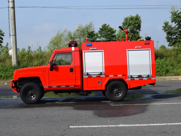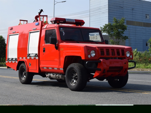 JDF5040GXFSG10/B6型水罐消防車,采用北京汽車BAW2043HHS42D越野底盤改裝而成。整車由消防員乘員室和車身兩大部分組成,乘員室為原裝單排,可乘坐2人,該車為外露罐結構,車身前部為器材箱,中間為水罐,后部為泵房。載液罐體為優(yōu)質碳鋼,與底盤采用螺栓連接,載水955kg。裝備了上海雄真消防設備有限公司生產CB10/20型消防泵,額定流量20L/S,車頂安裝成都威斯特消防機械有限公司生產的P8/S20W型車用消防炮。該車輛結構緊湊,配置完備,機動性強,能夠及時應對企業(yè),社區(qū)或重點消防單位的火情,可以第一時間形成小型戰(zhàn)斗力進行初期火災的撲救和人員疏散撤離??蓮V泛應用于消防救援站,政府專職消防隊,企業(yè)專職消防隊等。