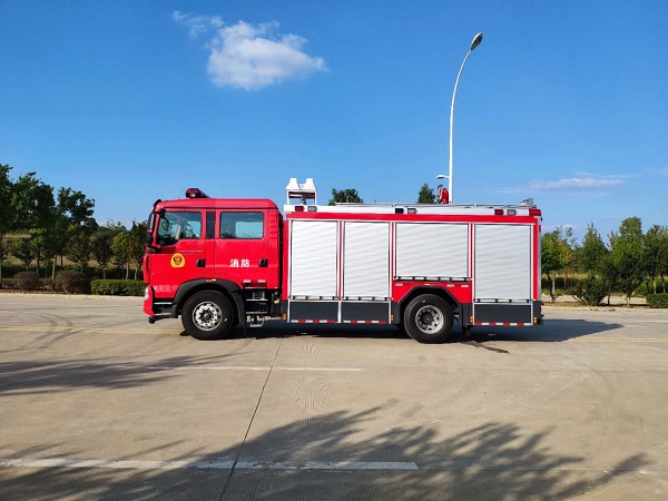 電氣配置 | 駕駛室頂部前端為長排**燈,車身后配有24V60W火場照明燈一只,車輛兩側(cè)上方各配有紅藍相配的爆閃燈,下方安裝安全標志燈,乘員室、器材箱、泵房內(nèi)均裝有照明燈,加裝有100W**報燈,加轉(zhuǎn)**燈開關(guān),通訊設備預留接口。 |