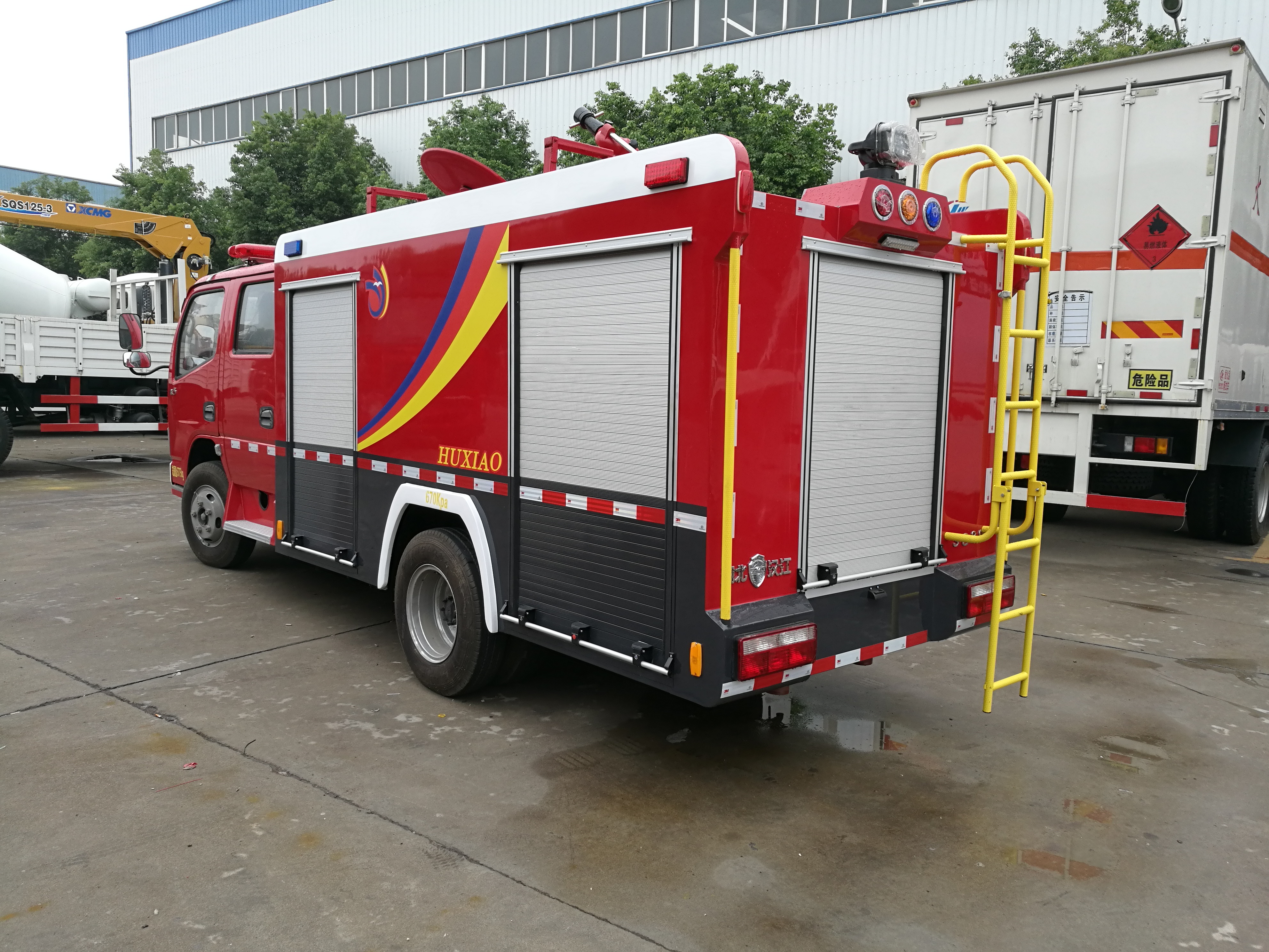 電氣配置 | 駕駛室頂部前端為長(zhǎng)排**燈,車(chē)身后配有24V60W火場(chǎng)照明燈一只,車(chē)輛兩側(cè)上方各配有紅藍(lán)相配的爆閃燈,下方安裝安全標(biāo)志燈,乘員室、器材箱、泵房?jī)?nèi)均裝有照明燈,加裝有100W**報(bào)燈,加轉(zhuǎn)**燈開(kāi)關(guān),通訊設(shè)備預(yù)留接口。 | ||