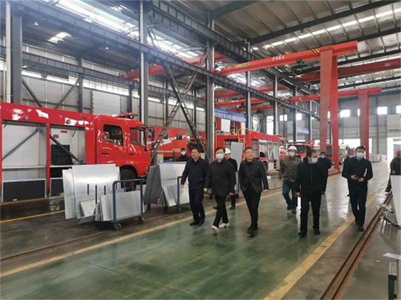 一行人員走進消防車及應急特種車生產車間,詳細了解了公司主要產品結構、制造產能、生產經營狀況、發(fā)展前景及當前發(fā)展面臨的困難。